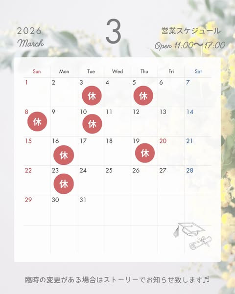 ご不便をおかけしますが、ご来店の際はカレンダーをご確認ください🌟